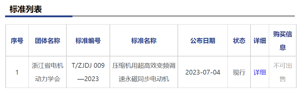 三、2023年7月,我司參與起草的浙江省團體標準《壓縮機用超高效變頻調速永磁同步電動機》正式發布。